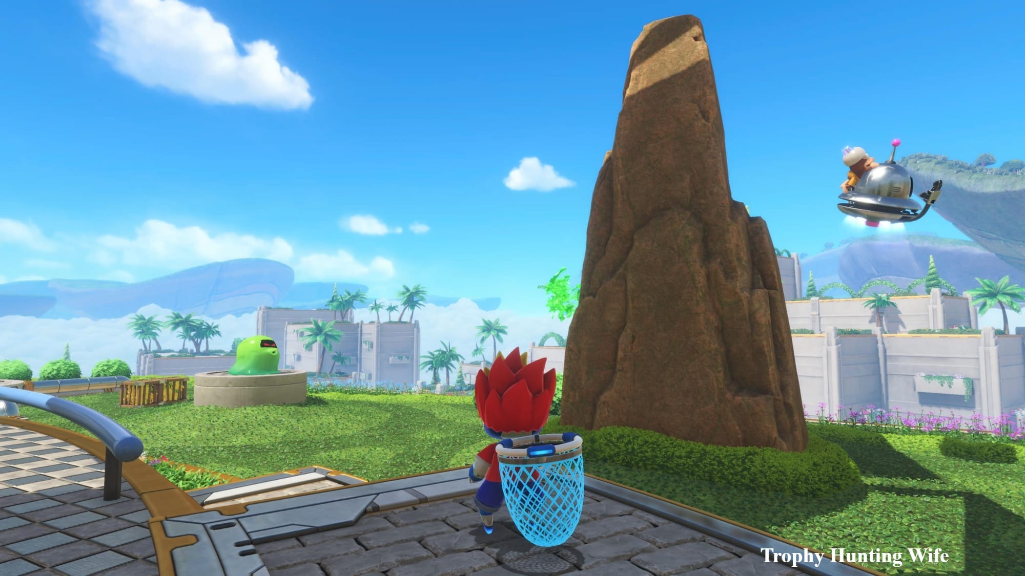 Bot Ten: Hop on the railing of the statue in the middle of the area where you will need to defeat enemies. Catch him with the net.